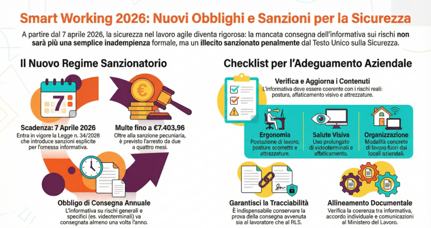 Dal 7 aprile 2026 il lavoro agile entra in una fase più rigorosa sul piano della sicurezza. La novità non riguarda la possibilità di lavorare da remoto, ma la gestione degli obblighi informativi del datore di lavoro nei confronti dei…