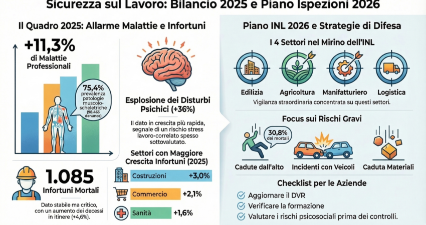 Il 2025 si è chiuso con segnali contraddittori in materia di sicurezza sul lavoro. Da un lato, alcuni indicatori mostrano miglioramenti parziali. Dall’altro, i dati INAIL pubblicati a gennaio 2026 rivelano criticità strutturali che non possono essere ignorate: infortuni in…